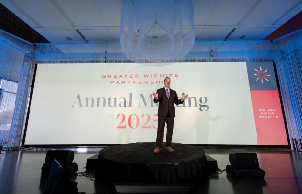 The Annual Meeting opened with a dynamic video spotlighting Wichita’s global aerospace presence. Originally shown at the Air Capital of the World Reception at the Paris Air Show, the video captured the region’s unmatched capabilities, including advanced aircraft and engineers pushing the boundaries of innovation. The imagery emphasized a powerful message: the ideas, investments and talent cultivated in Wichita resonate far beyond Kansas.