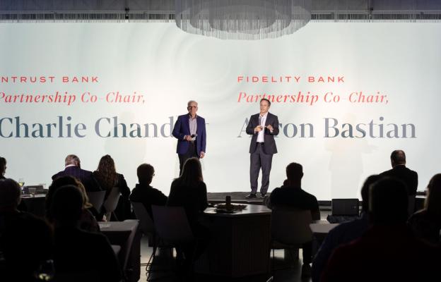 Partnership Co-Chairs Aaron Bastian and Charlie Chandler took the stage to thank investors and celebrate the power of collective leadership that continues to propel the Wichita region forward.